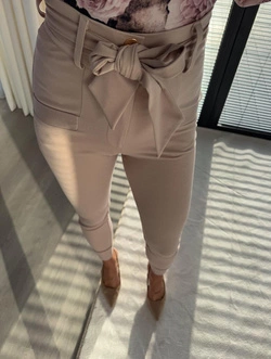 Spodnie materiałowe z eleganckim wiązaniem i wysokim stanem Elle beżowe